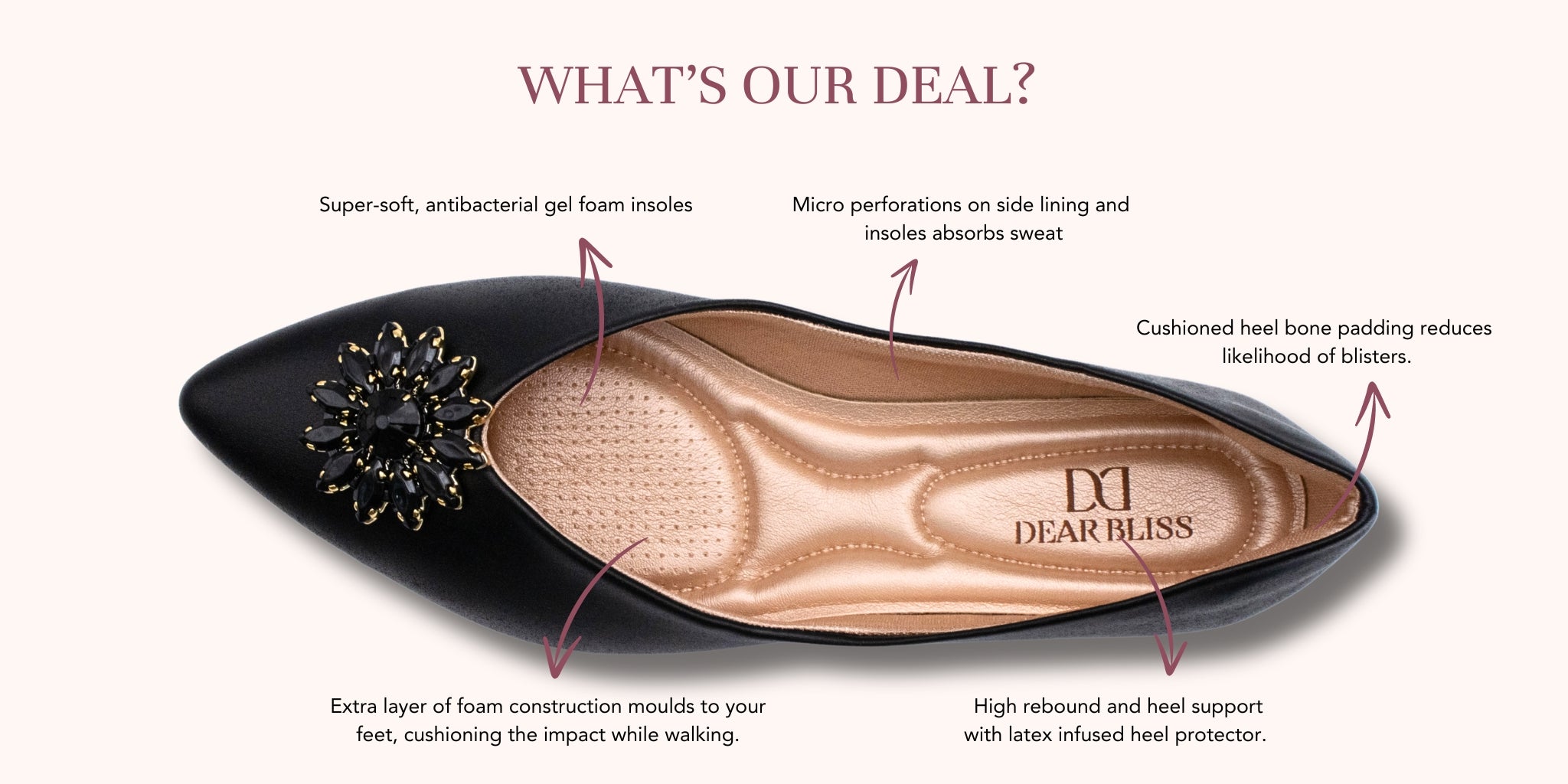 Dear Bliss was inspired by the many conversations women have had around finding flats where the comfort of wearing them trumps its design.