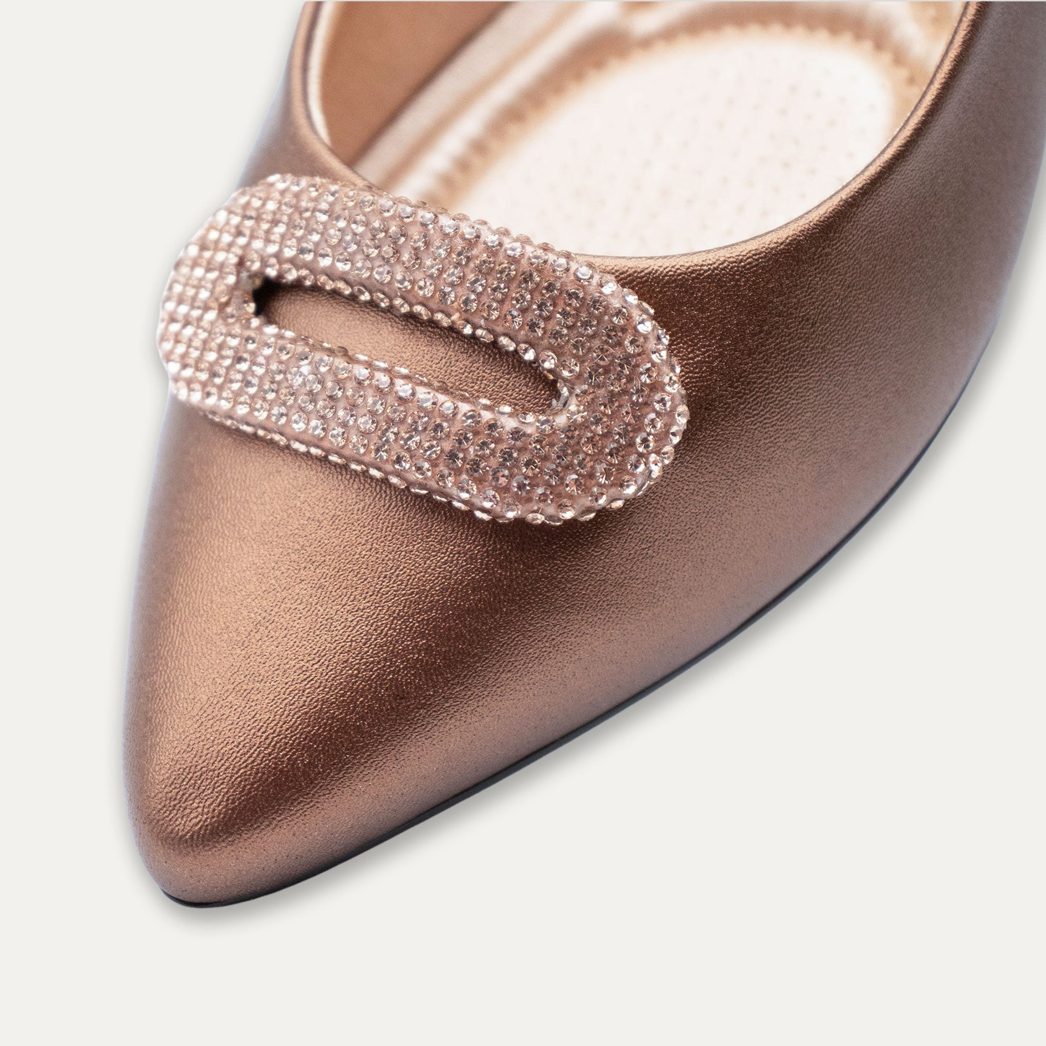 - Fixed with crystal embellished buckle on the vamp.