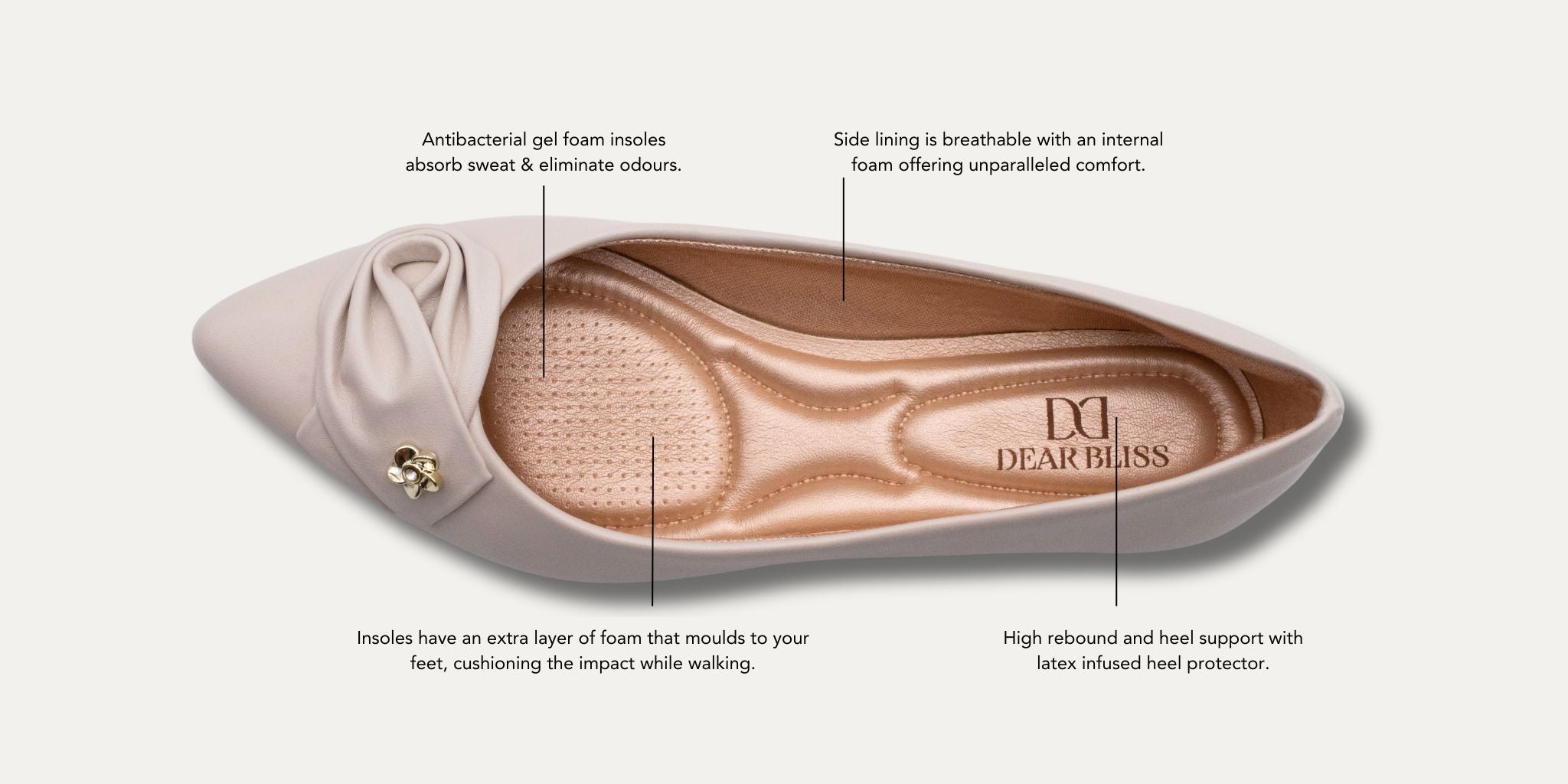 - Fabric lining and insoles feature micro perforations made with a breathable interior foam that absorbs sweat.