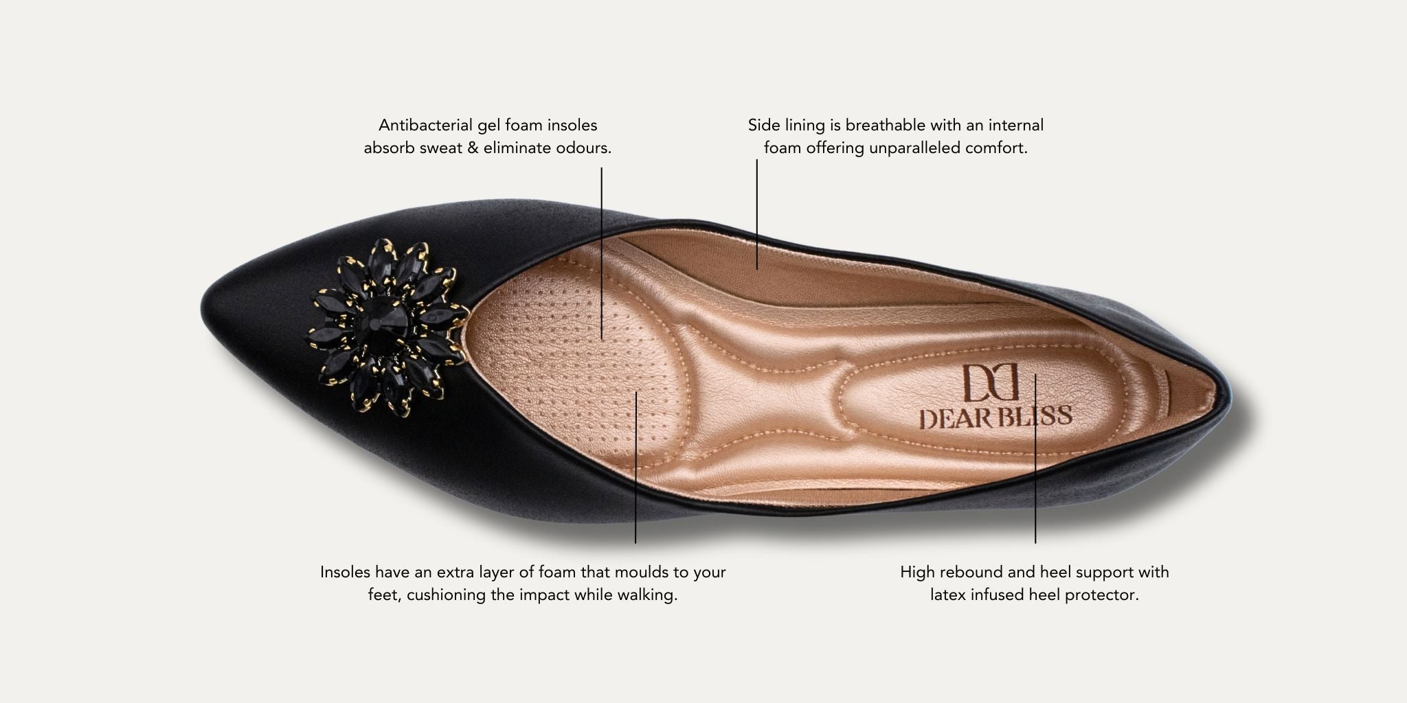 - Fixed with floral acrylic adornment on the vamp.