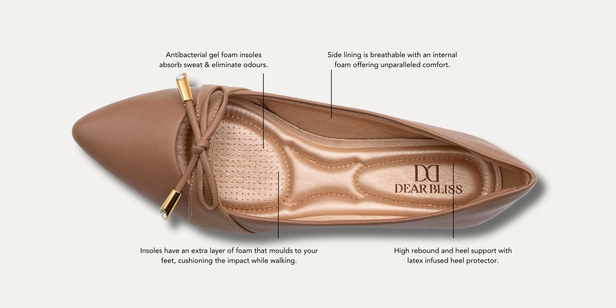 - Fabric lining and insoles feature micro perforations made with a breathable interior foam that absorbs sweat.