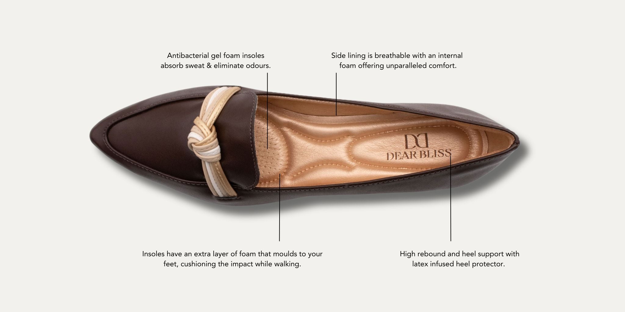 - Fabric lining and insoles feature micro perforations made with a breathable interior foam that absorbs sweat.
