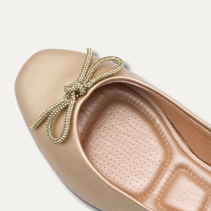 - Leatherette upper in metallic finish with a smooth, rounded toe box.